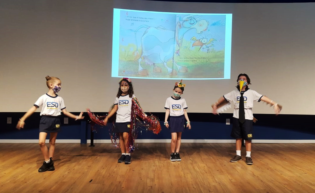 Durante a atividade, que fez parte da aula de música, os alunos desenvolveram a expressão corporal e o fazer artístico, trabalhando a apreciação musical, o timbre, o ritmo, a interpretação e a dramatização. Os nossos pequenos artistas fizeram um grande espetáculo!