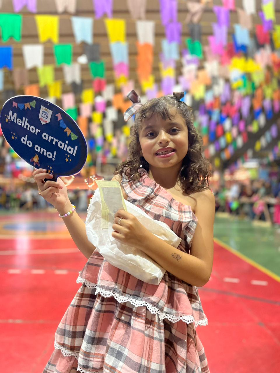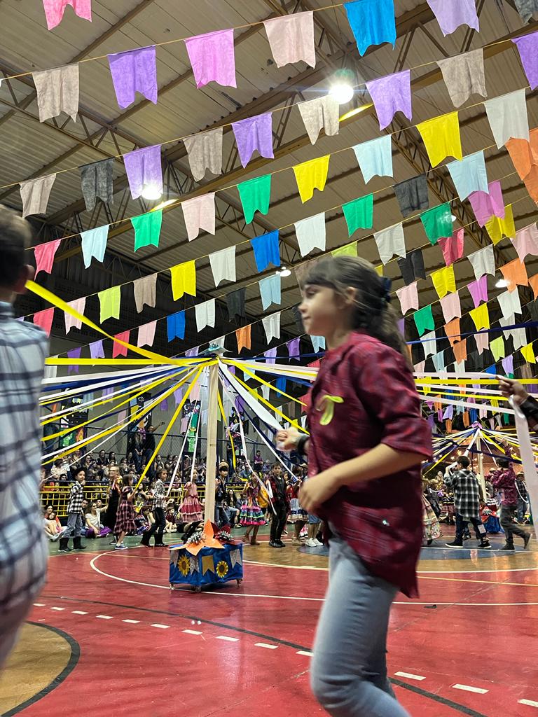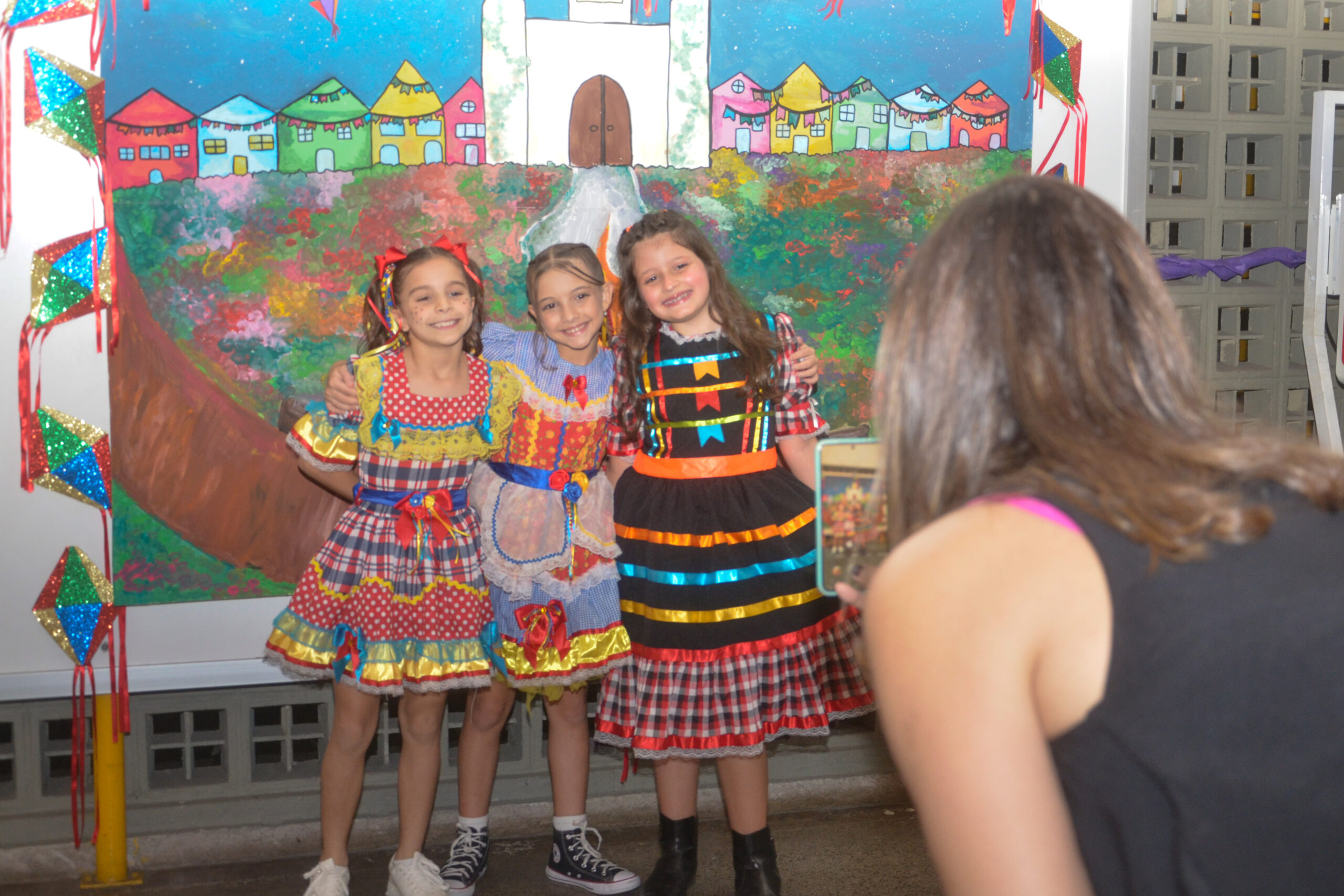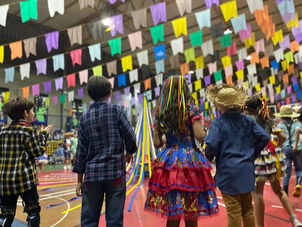 Os pequenos dançarinos apresentaram coreografias típicas, demonstrando dedicação e entrosamento durante suas performances. A energia contagiante da música e das danças juninas envolveu a todos.